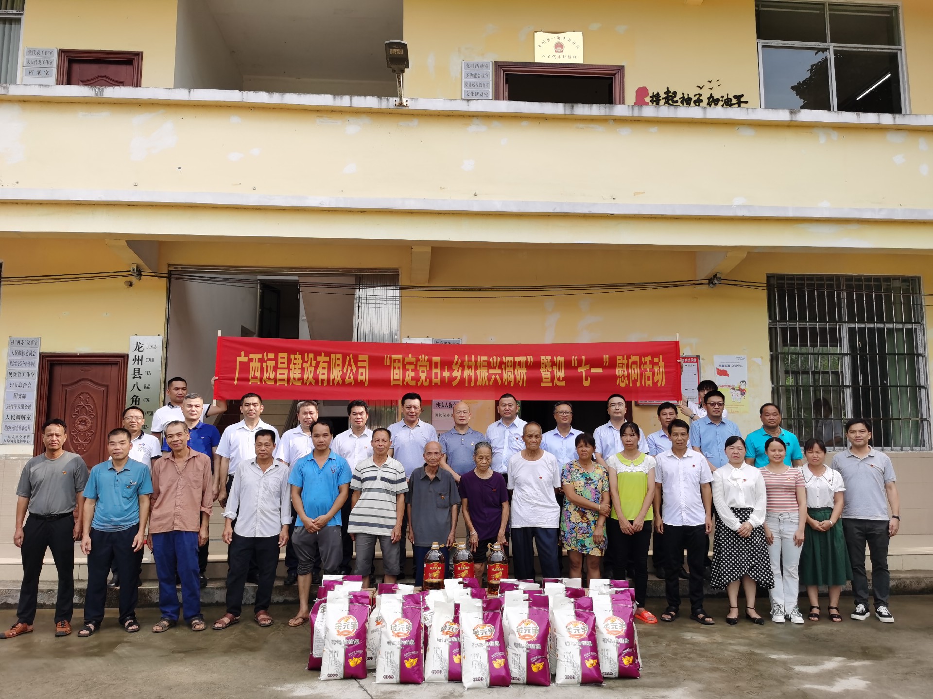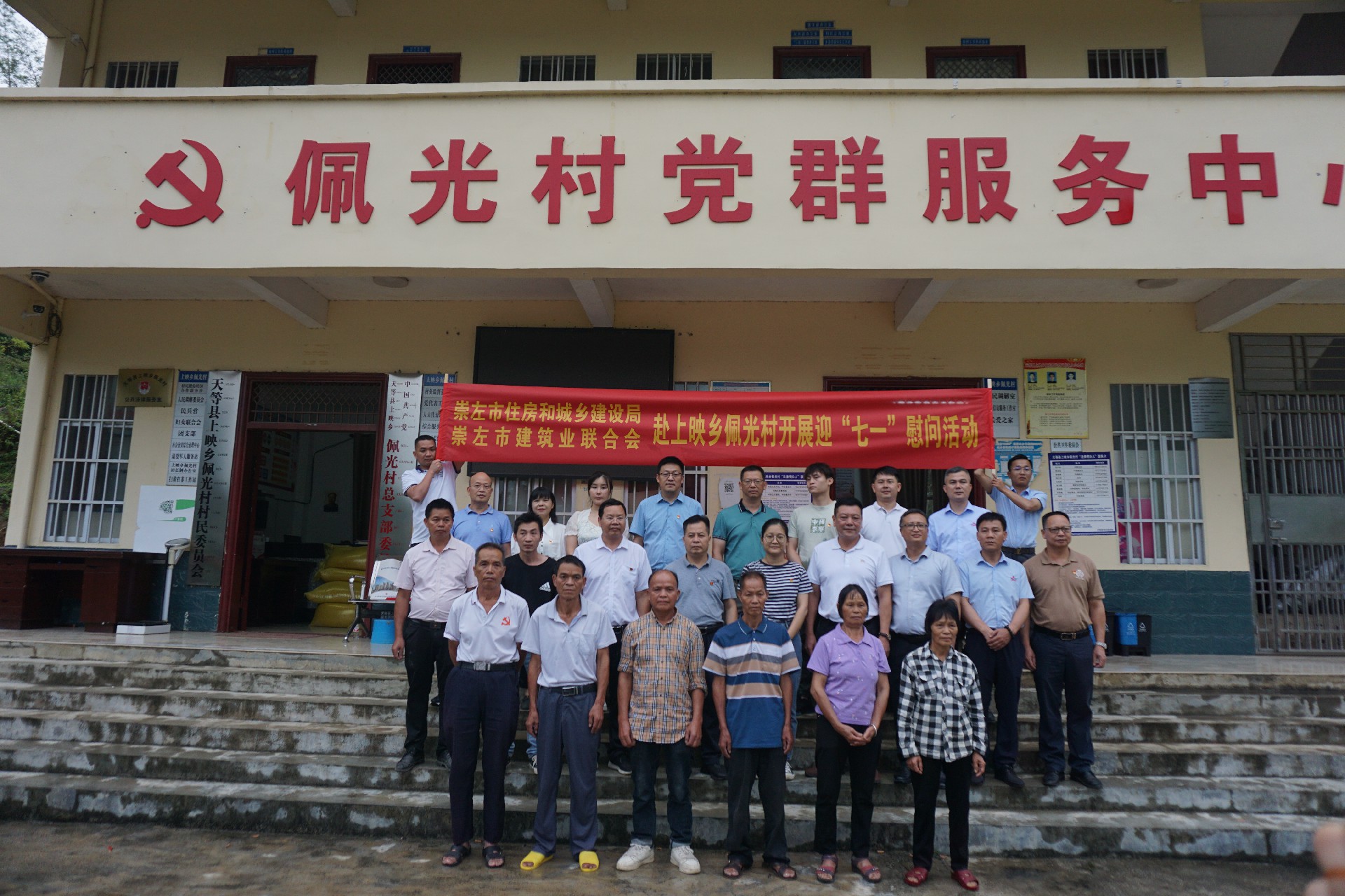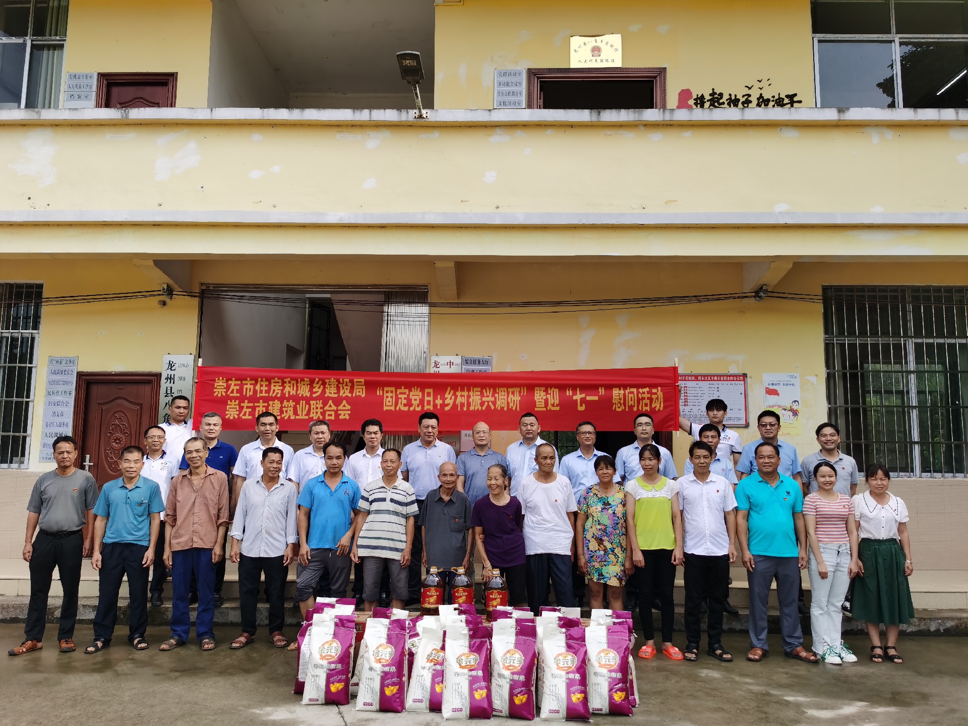 活動分兩次進行,分別于6月15日、6月19日深入龍州縣八角鄉菊埂村及天等縣上映鄉平典村、佩光村開展鄉村振興工作調研暨迎“七一”慰問活動。崇左市住房和城鄉建設局黨組書記、局長何日明,黨組副書記丁山,黨組成員、環衛中心主任農榮武及崇左市建筑業聯合會會長杜光漢參加活動。參加活動的還有中鐵七局四公司崇左棚改項目部黨支部書記郝尊廣 、一級項目經理左鎮源、項目工會主席李劍佳 ;廣西建工集團控股有限公司黨委副書記、紀委書記、工會主席韋慶偉,廣西建工集團控股有限公司第七分公司黨支部書記劉雄、總經理、工會主席周田生、副總經理、主任工程師唐亮平 ;廣西華業建筑工程有限公司南寧運營中心總經理黃強;廣西遠昌建設有限公司總經理李熙兵等。
