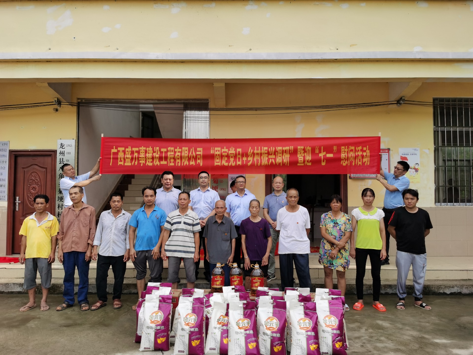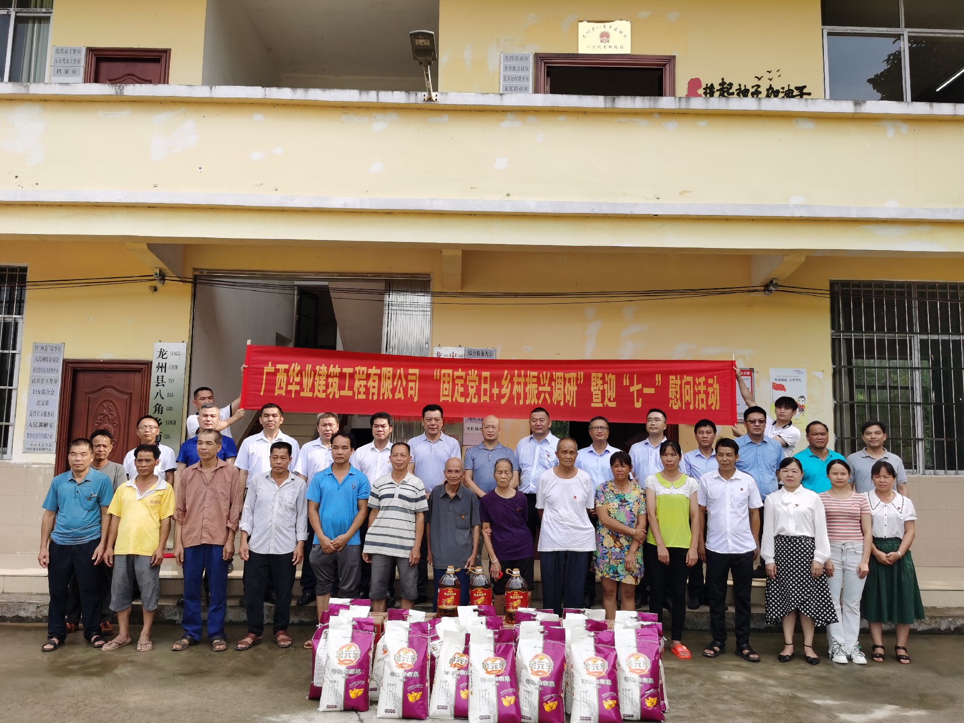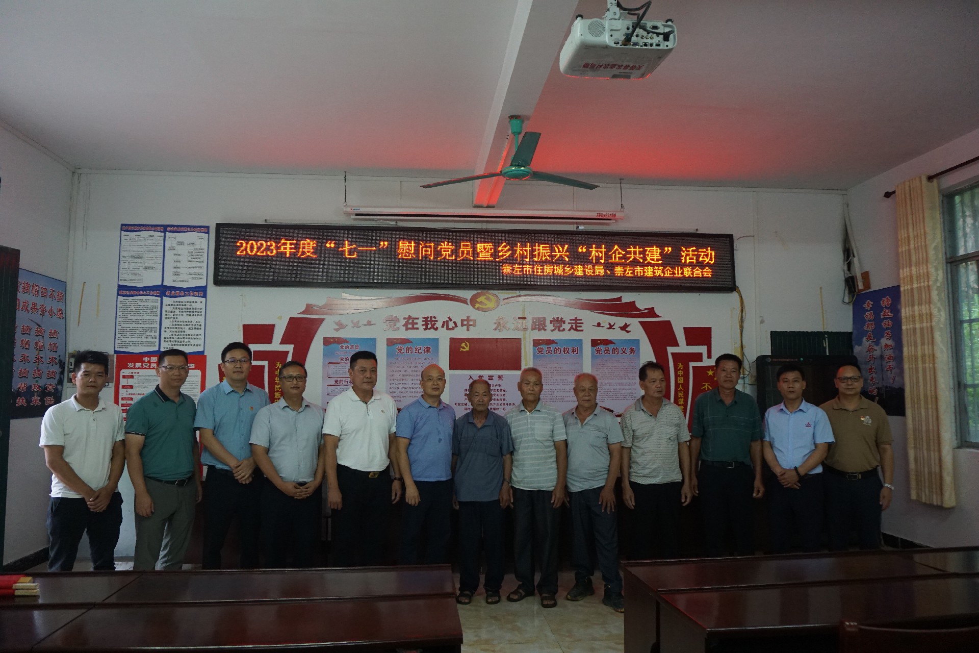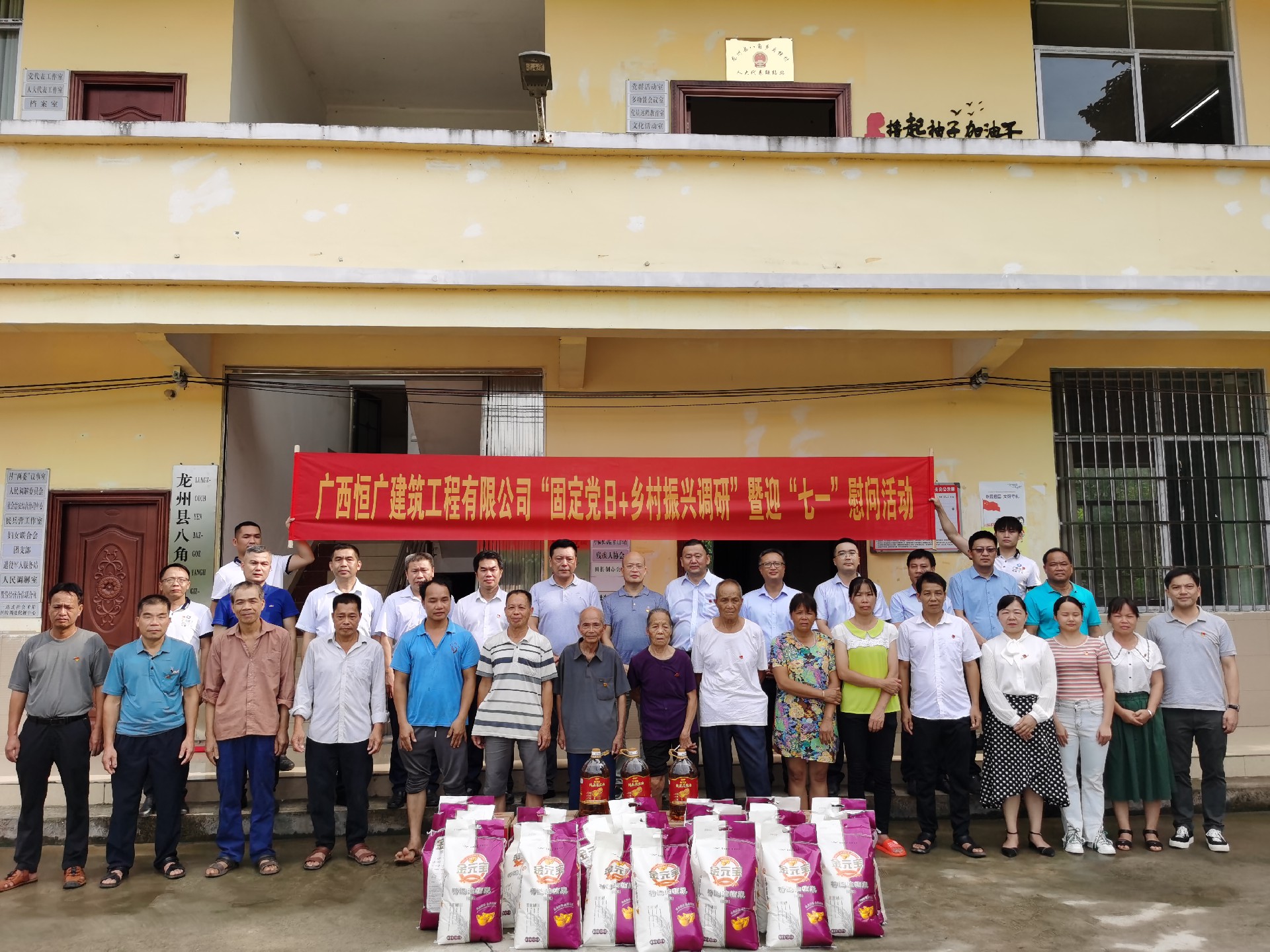 活動分兩次進行,分別于6月15日、6月19日深入龍州縣八角鄉菊埂村及天等縣上映鄉平典村、佩光村開展鄉村振興工作調研暨迎“七一”慰問活動。崇左市住房和城鄉建設局黨組書記、局長何日明,黨組副書記丁山,黨組成員、環衛中心主任農榮武及崇左市建筑業聯合會會長杜光漢參加活動。參加活動的還有中鐵七局四公司崇左棚改項目部黨支部書記郝尊廣 、一級項目經理左鎮源、項目工會主席李劍佳 ;廣西建工集團控股有限公司黨委副書記、紀委書記、工會主席韋慶偉,廣西建工集團控股有限公司第七分公司黨支部書記劉雄、總經理、工會主席周田生、副總經理、主任工程師唐亮平 ;廣西華業建筑工程有限公司南寧運營中心總經理黃強;廣西遠昌建設有限公司總經理李熙兵等。