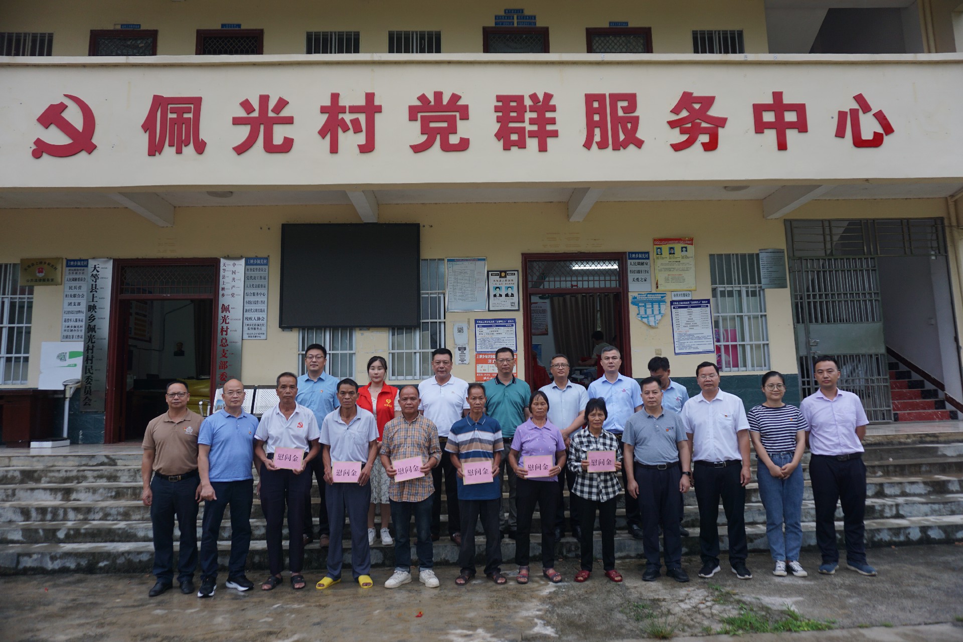 圖為崇左市建筑業聯合會、企業與市住建城鄉建設局慰問在佩光村村兩委干部、駐村工作隊員和老黨員、困難黨員